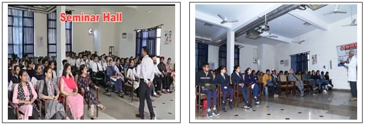 A Seminar Hall with the seating capacity of almost 200 has been built with State-of-the-Art Techniques. It has the latest equipments in the form of mics and speakers. Various seminars and faculty development programs are held in the Seminar Hall for the students as well as the faculty. It is well ventilated and quite spacious which makes it an ideal space for various get togethers.